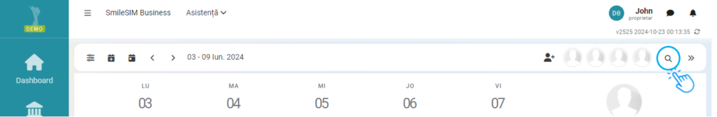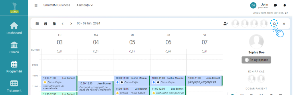 - In modulul "Programări" , căutați pacientul folosind bara de căutare din dreapta sus.