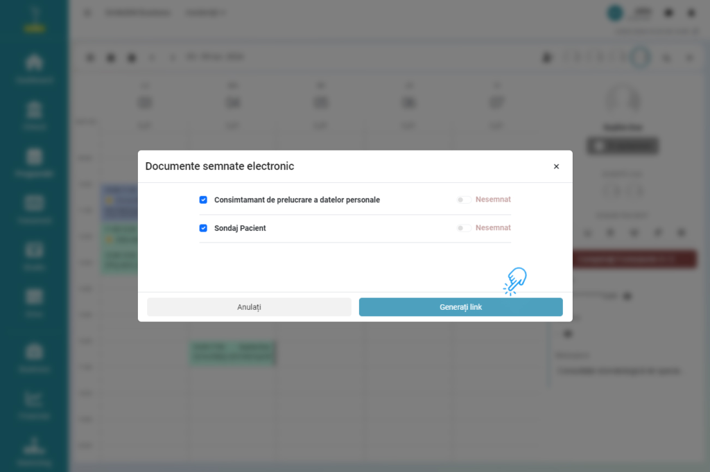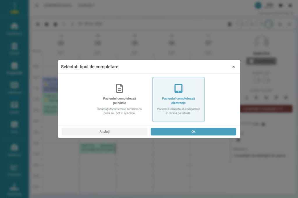 - Bifați formularele care trebuie completate și semnate de pacient.