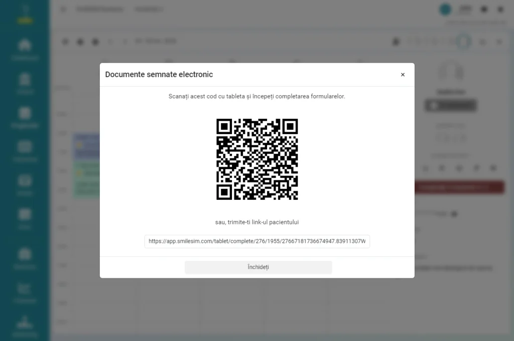 - Scanați codul QR de pe ecran cu tableta pentru ca pacientul să poată completa și semna formularele electronic.