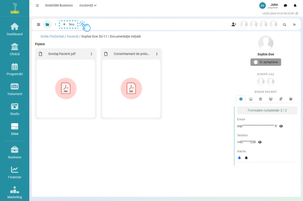 Acest ghid vă va arăta cum să adăugați un pacient nou în sistemul clinicii și cum să gestionați prima vizită, de la completarea formularelor până la înregistrarea plății și a procedurilor efectuate.