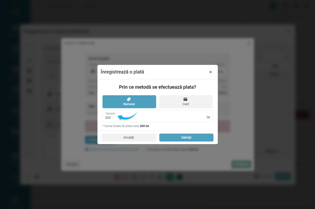 - Softul permite evidența plății aferente unei programări: total / parțial sau amânarea plății.