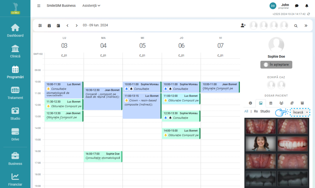 - Iar apoi click pe "Încarcă" (Rx - pentru radiografii, Studio - pentru fotografii)