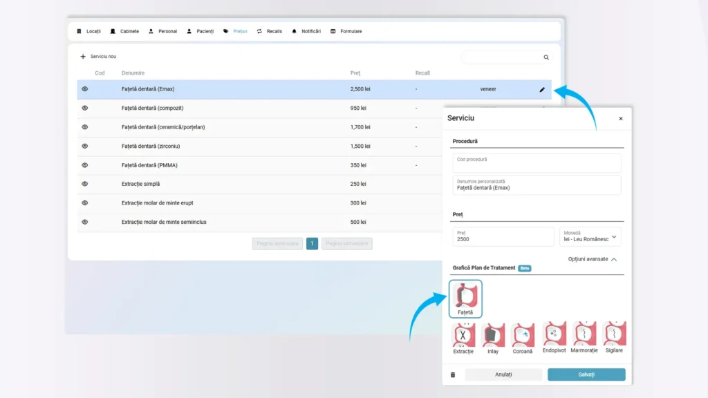 Am extins planul de tratament pentru lucru colaborativ, astfel încât mai mulți medici să poată lucra pe același caz. Medicul coordonator creează planul și îl partajează cu medicii din echipă. Fiecare medic poate adăuga etape și proceduri, iar notițele interne ajută la o coordonare mai bună.